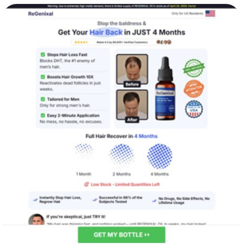 Hair loss is a common concern for millions of people around the world, affecting both men and women. Whether it's due to aging, hormonal imbalance, stress, or genetics, thinning hair can impact confidence and self-image. In response, the market is flooded with products that promise results—but few deliver sustainable, healthy hair growth. ReGenixal Hair Recover enters the scene as a premium, holistic hair care solution that claims to support scalp health and stimulate natural hair regrowth using a personalized and natural approach.